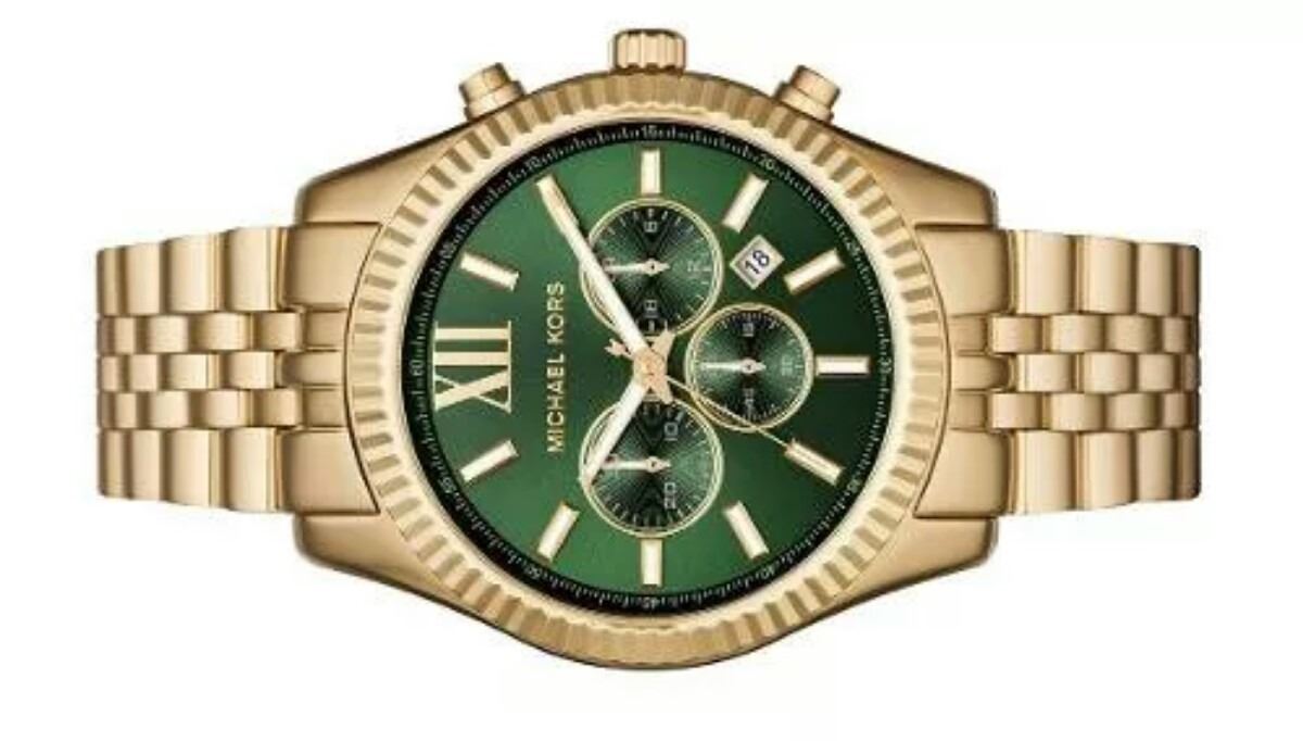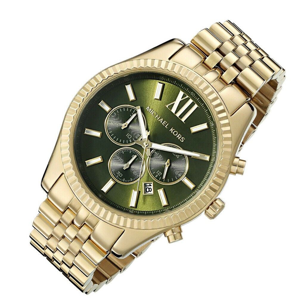 GREEN DIAL GOLD TONE 44MM WATCH.JEWELLERY