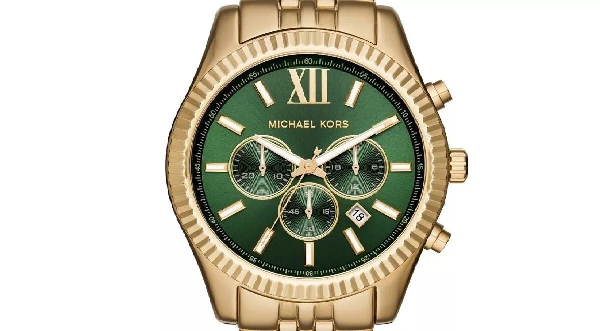 GREEN DIAL GOLD TONE 44MM WATCH.JEWELLERY