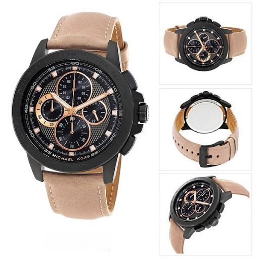 BLACK DIAL/BEIGE LEATHER STRAP WATCH. JEWELLERY.
