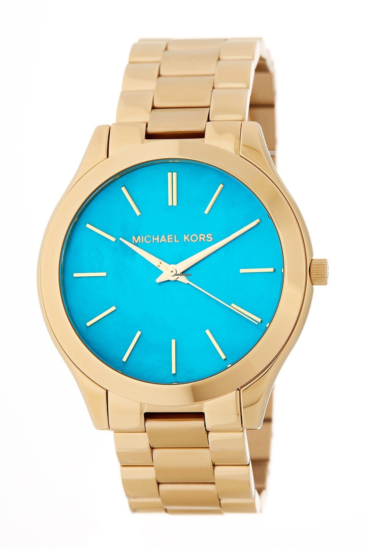 MOTHER-OF-PEARL DIAL W/ GOLD BAND WATCH. JEWELRY