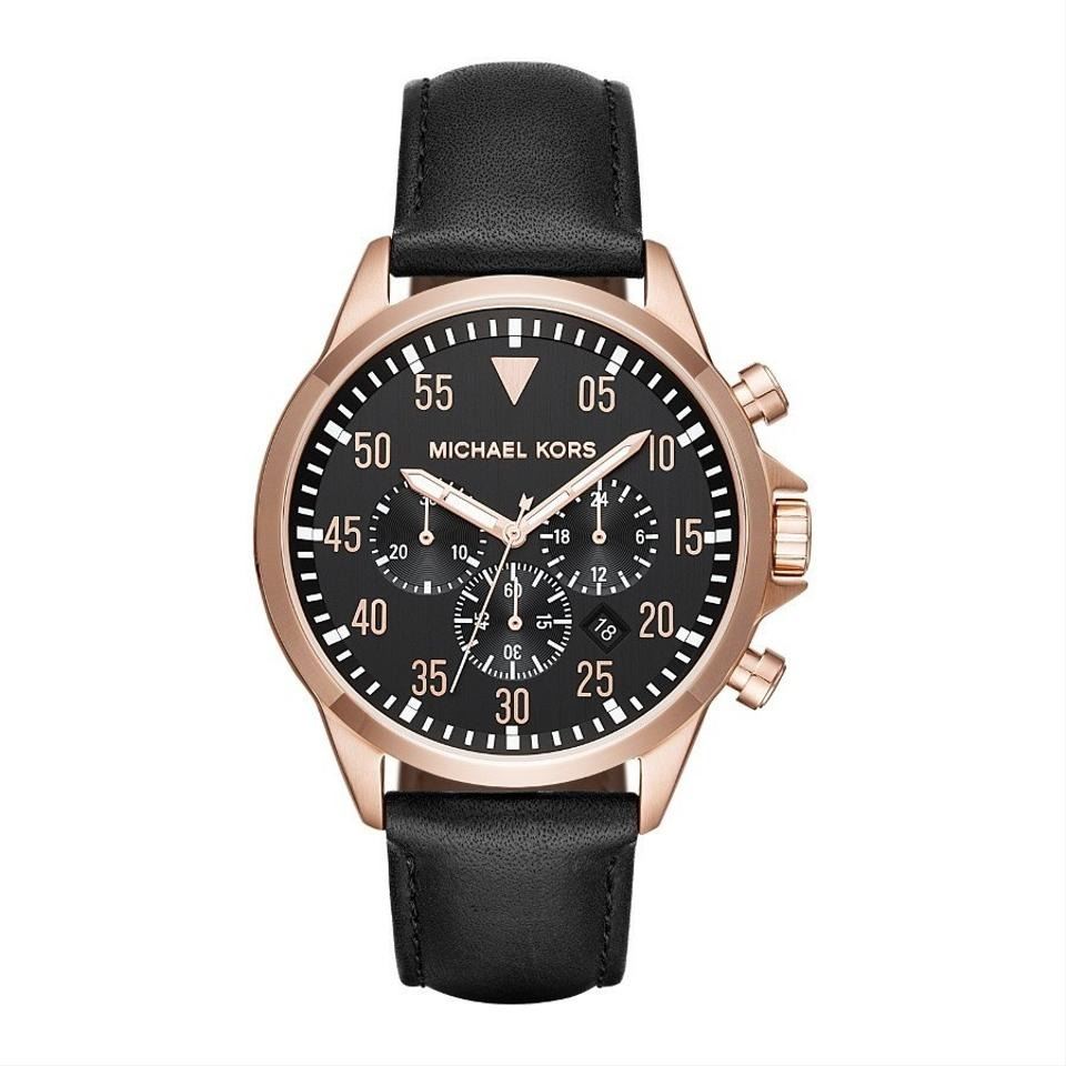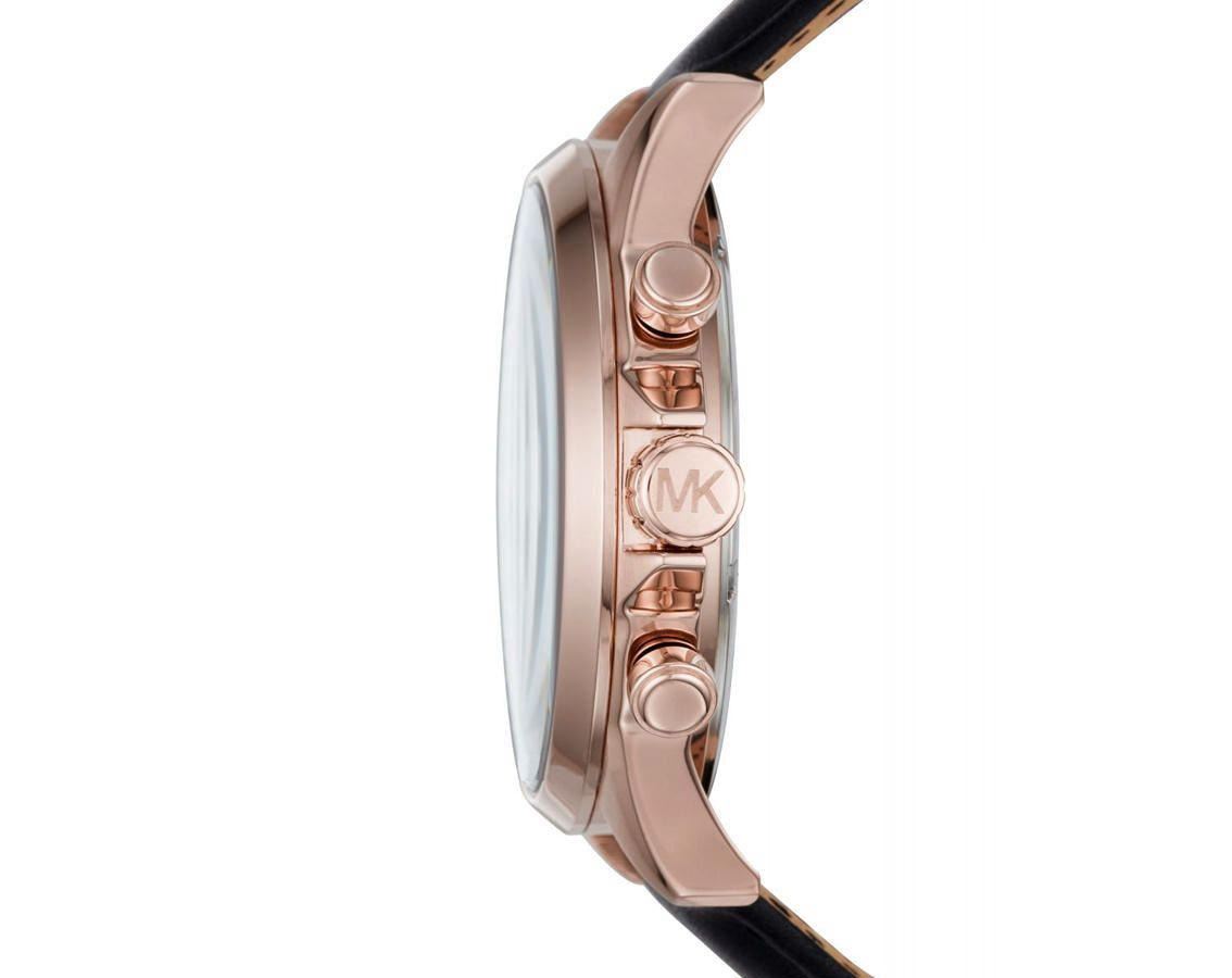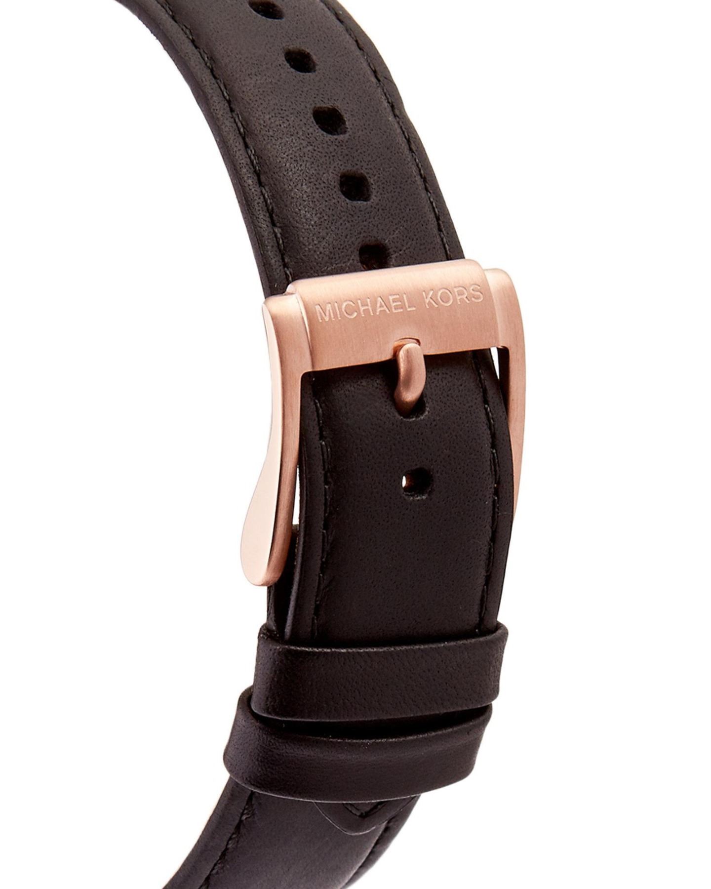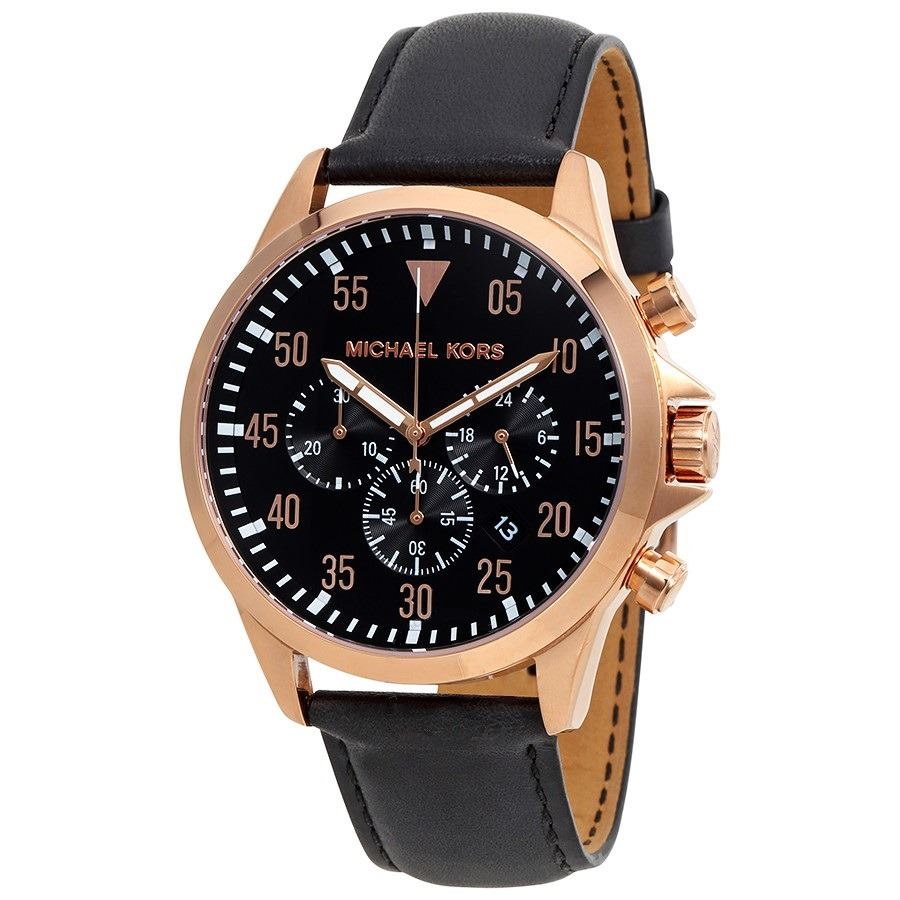 43MM ROSE GOLD BEZEL/BLACK LEATHER STRAP WATCH. JEWELRY