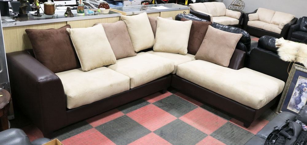 NEW MICROFIBRE MULTITONE SECTIONAL, 91"X119"