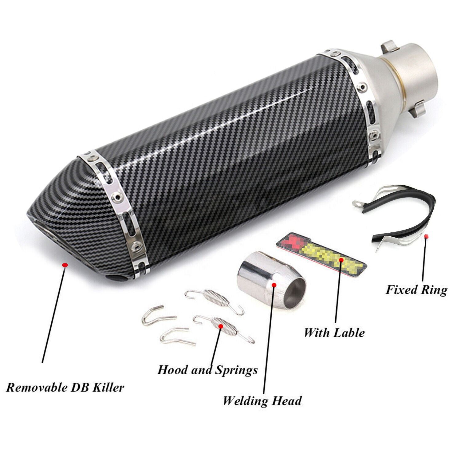 SILENCER W/ HARDWARE, CARBON FIBRE COLOR, STAINLESS WELDING ADAPTER TO FIT PIPE 38-51MM. L **ALL ITEMS MUST BE REMOVED BY 5PM SATURDAY, DECEMBER 9TH 2023. ALL REMAINING ITEMS WILL BE SUBJECT TO A $6.00 PER DAY STORAGE CHARGE. ANY ITEMS REMAINING AFTER THURSDAY, DECEMBER 21ST 2023 WILL BE CONSIDERED FORFEITED. NO REFUNDS WILL BE ISSUED FOR FORFEITED ITEMS. TO SCHEDULE A PICK UP APPOINTMENT CLICK HERE
