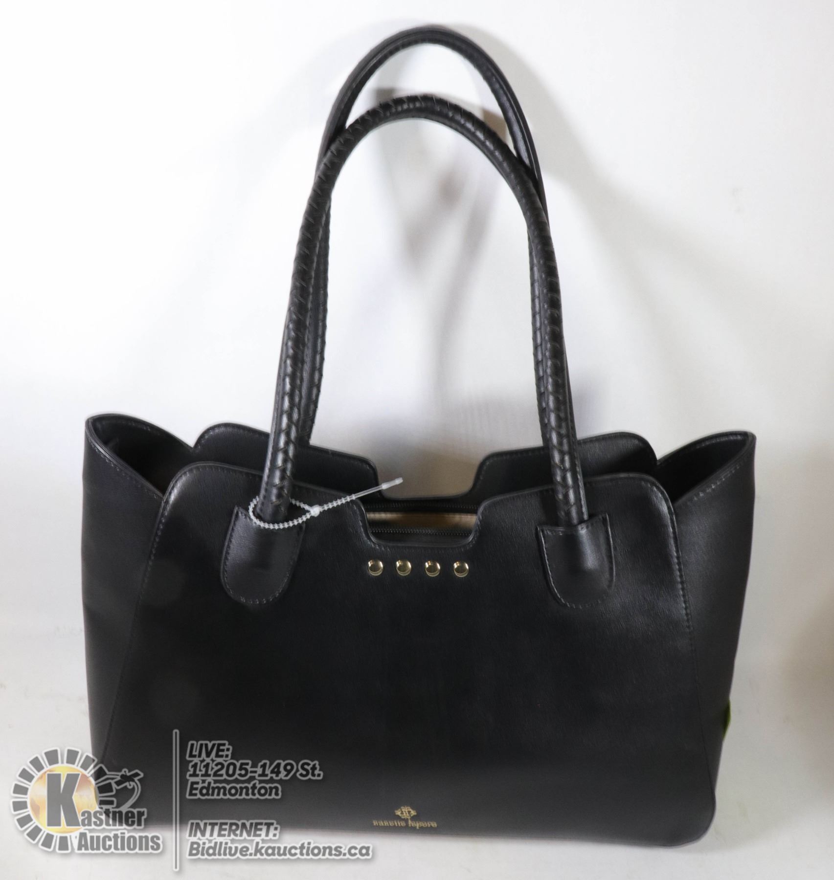 BLACK N GOLD, HAS CUT FLOWER DESIGN ON FRONT