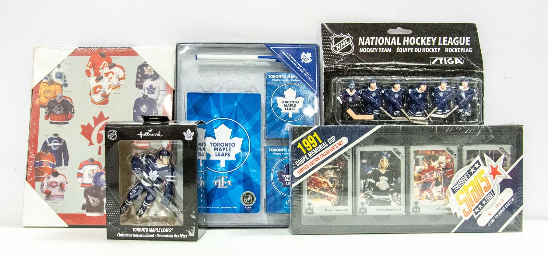 SET TORONTO MAPLE LEAFS, THE CANADIAN SIX HERTIGE PLAQUE, 1991 MEMORIAL CUP TOMORROW STARS TRADING CARDS, STIGA TABLE HOCKEY TORONTO 6 PACK FIGURES **ALL ITEMS MUST BE REMOVED BY 5PM MONDAY, NOVEMBER 14TH, 2022. ALL REMAINING ITEMS WILL BE SUBJECT TO A $6.00 PER DAY STORAGE CHARGE. ANY ITEMS REMAINING AFTER SUNDAY, DECEMBER 4, 2022 WILL BE CONSIDERED FORFEITED. NO REFUNDS WILL BE ISSUED FOR FORFEITED ITEMS. TO SCHEDULE A PICK UP APPOINTMENT CLICK HERE