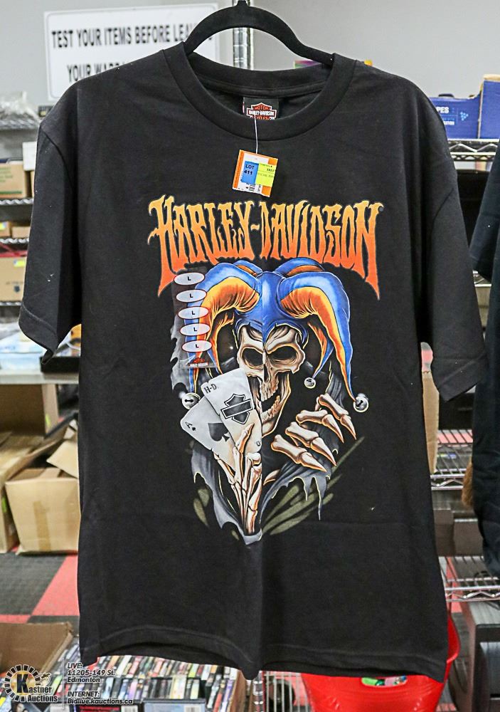 MOTORCYCLES T-SHIRT WITH SKULL HOLDING BLACKJACK HAND - MENS SIZE L (WITH TAGS) - CLOTHING