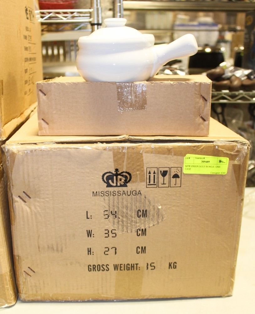 ONE CASE = 24 NEW ONION SOUP BOWLS WHITE /COVER - AS THEY COME IN CATALOGUE ORDER