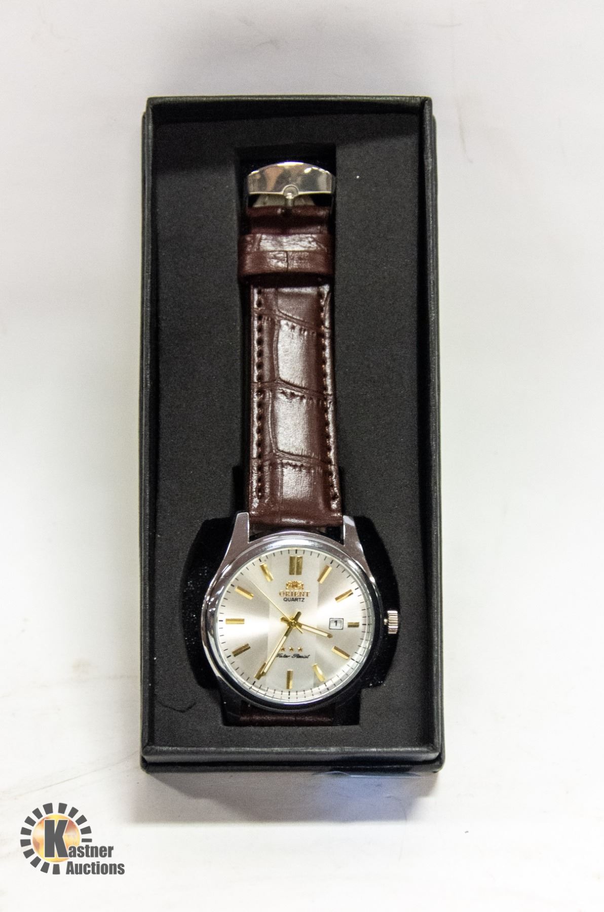MOVEMENT WATCH STAINLESS STEEL BACK WATER RESISTANT LEATHER STRAP WITH WATCH BOX **ALL ITEMS MUST BE REMOVED BY 5PM SATURDAY, FEBRUARY 17TH 2024. ALL REMAINING ITEMS WILL BE SUBJECT TO A $6.00 PER DAY STORAGE CHARGE. ANY ITEMS REMAINING AFTER MONDAY, MARCH 4TH, 2023 WILL BE CONSIDERED FORFEITED. NO REFUNDS WILL BE ISSUED FOR FORFEITED ITEMS. TO SCHEDULE A PICK UP APPOINTMENT CLICK HERE
