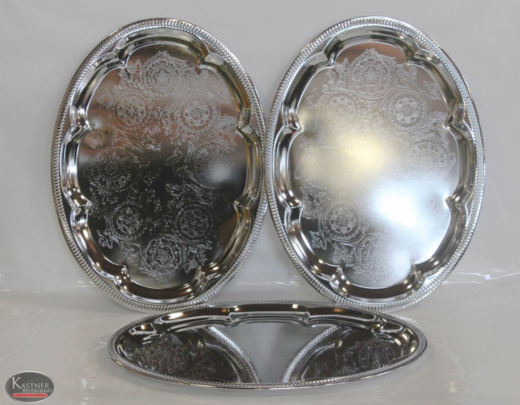 NEW OVAL TRAY 18" PLATED STEEL - LOT OF 3