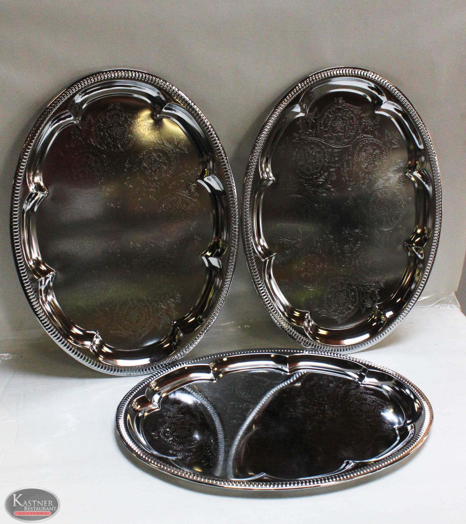 LOT OF 3 - OVAL TRAYS 18" PLATED STEEL