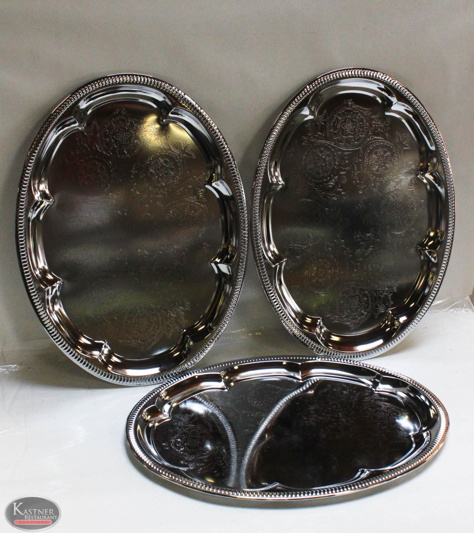 LOT OF 3 - OVAL TRAYS 18" PLATED STEEL