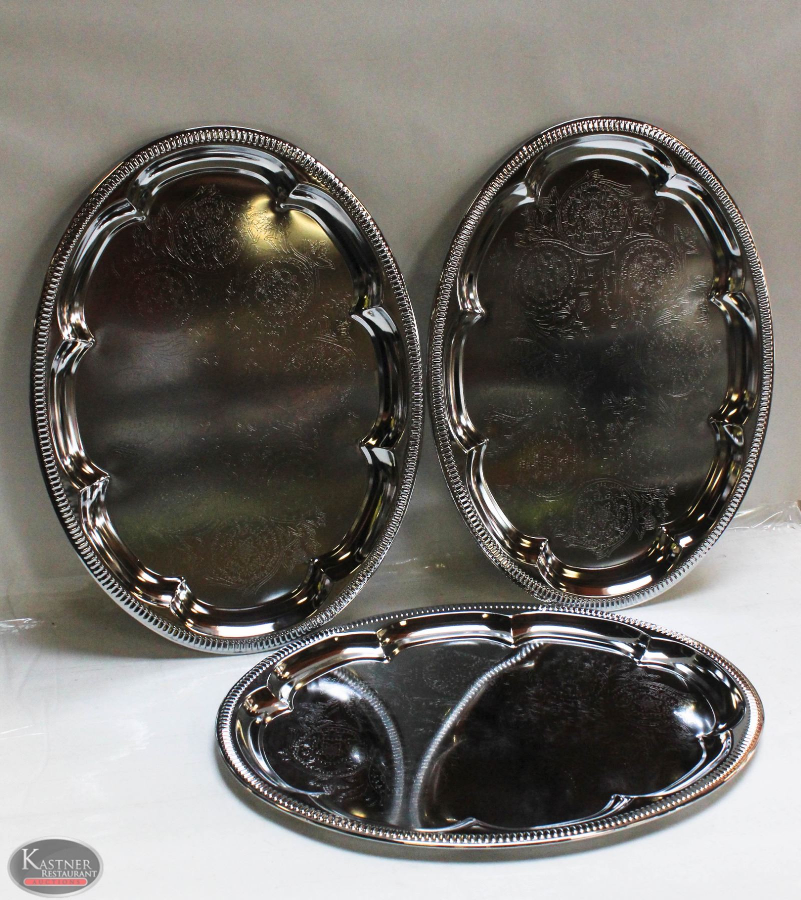 LOT OF 3 - OVAL TRAYS 18" PLATED STEEL