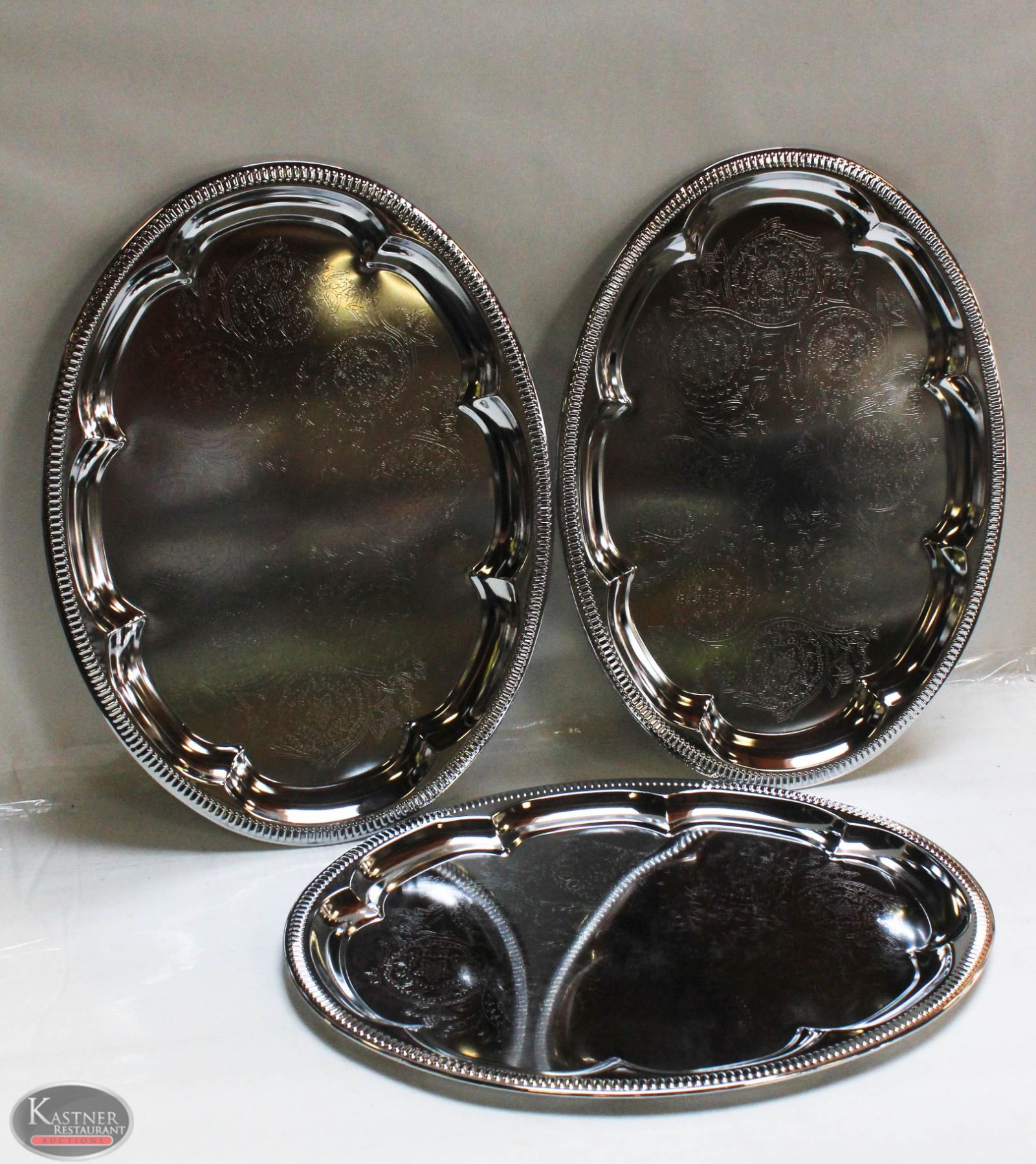LOT OF 3 - OVAL TRAYS 18" PLATED STEEL
