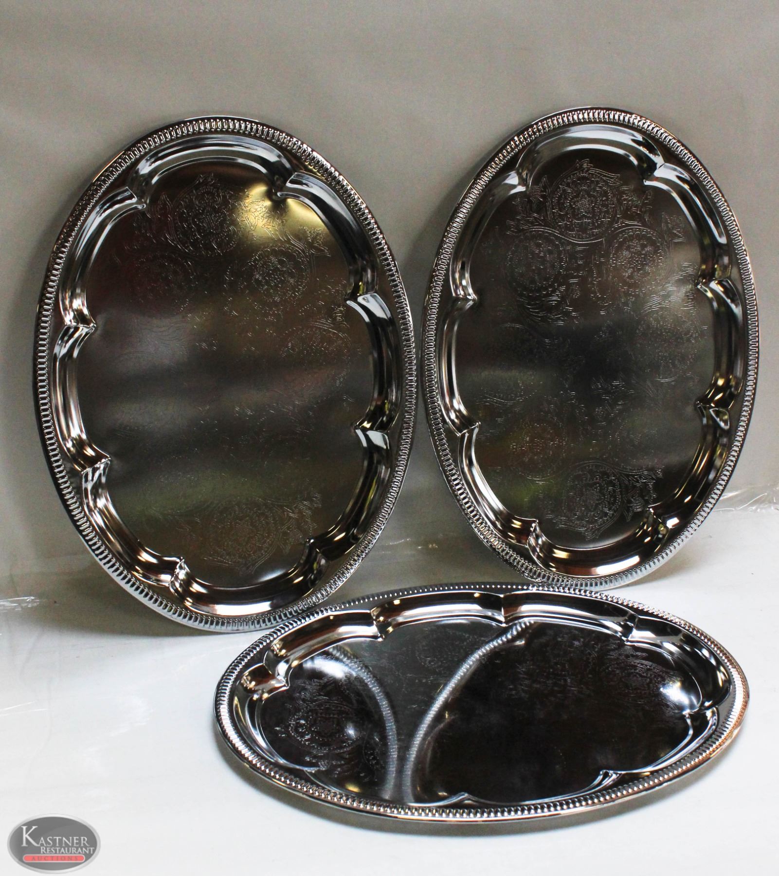 LOT OF 3 - OVAL TRAYS 18" PLATED STEEL