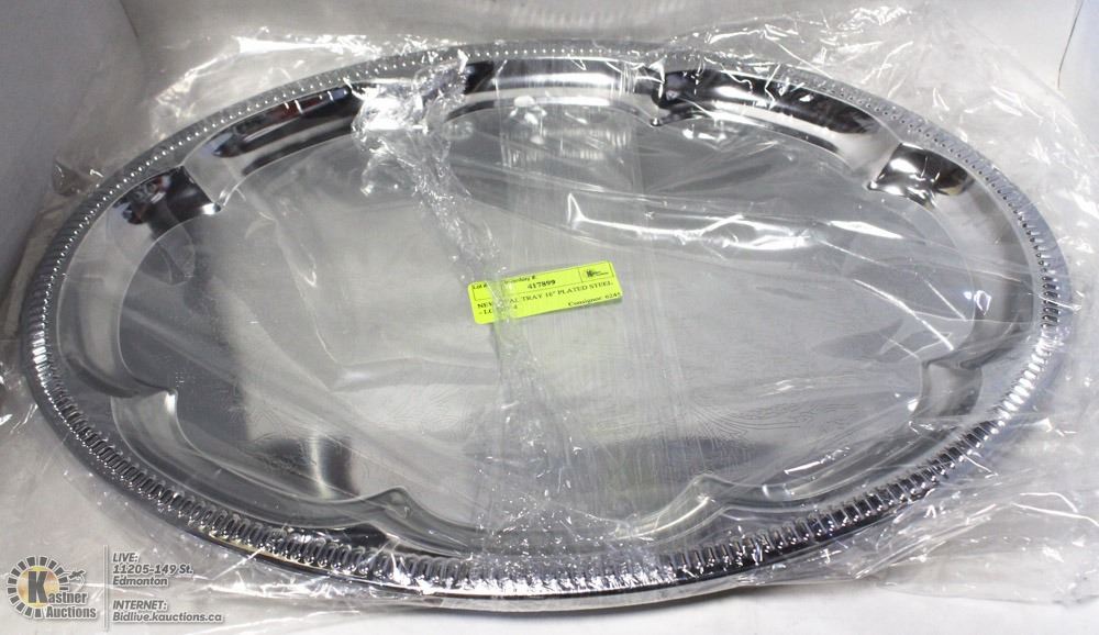 LOT OF 4 COMMERCIAL OVAL SERVING TRAYS 18" PLATED STEEL