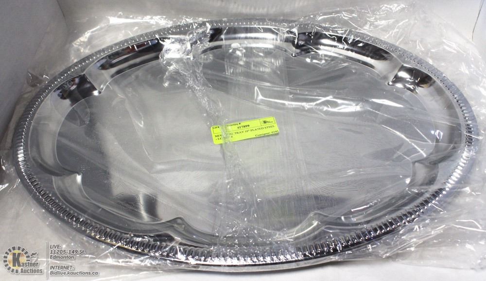 NEW OVAL TRAY 18" PLATED STEEL - LOT OF 4