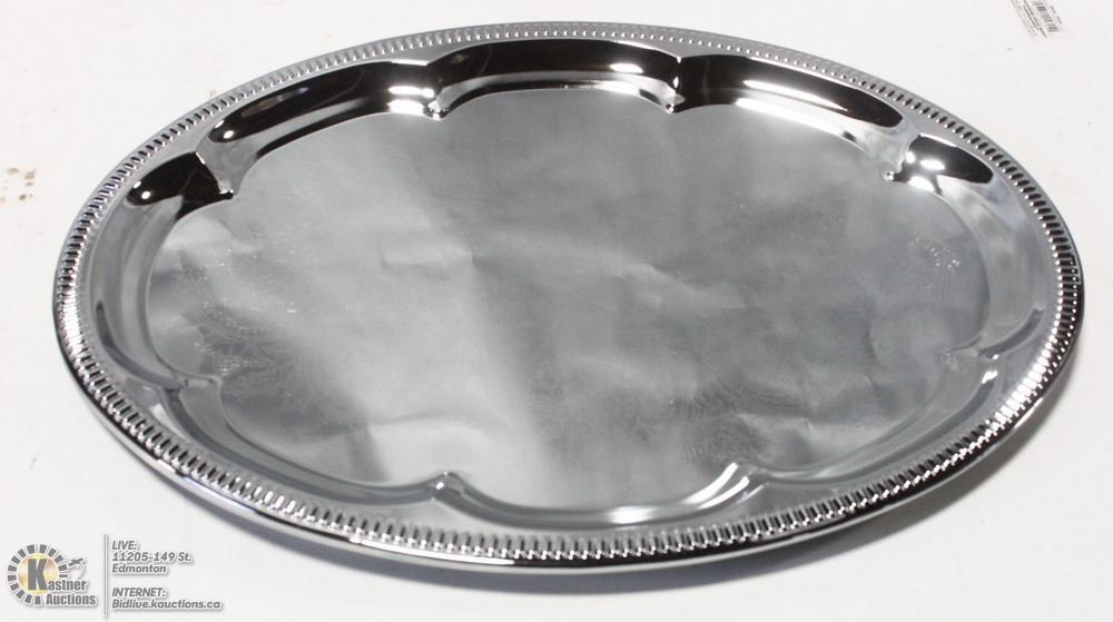 NEW OVAL TRAY 18" PLATED STEEL - LOT OF 4