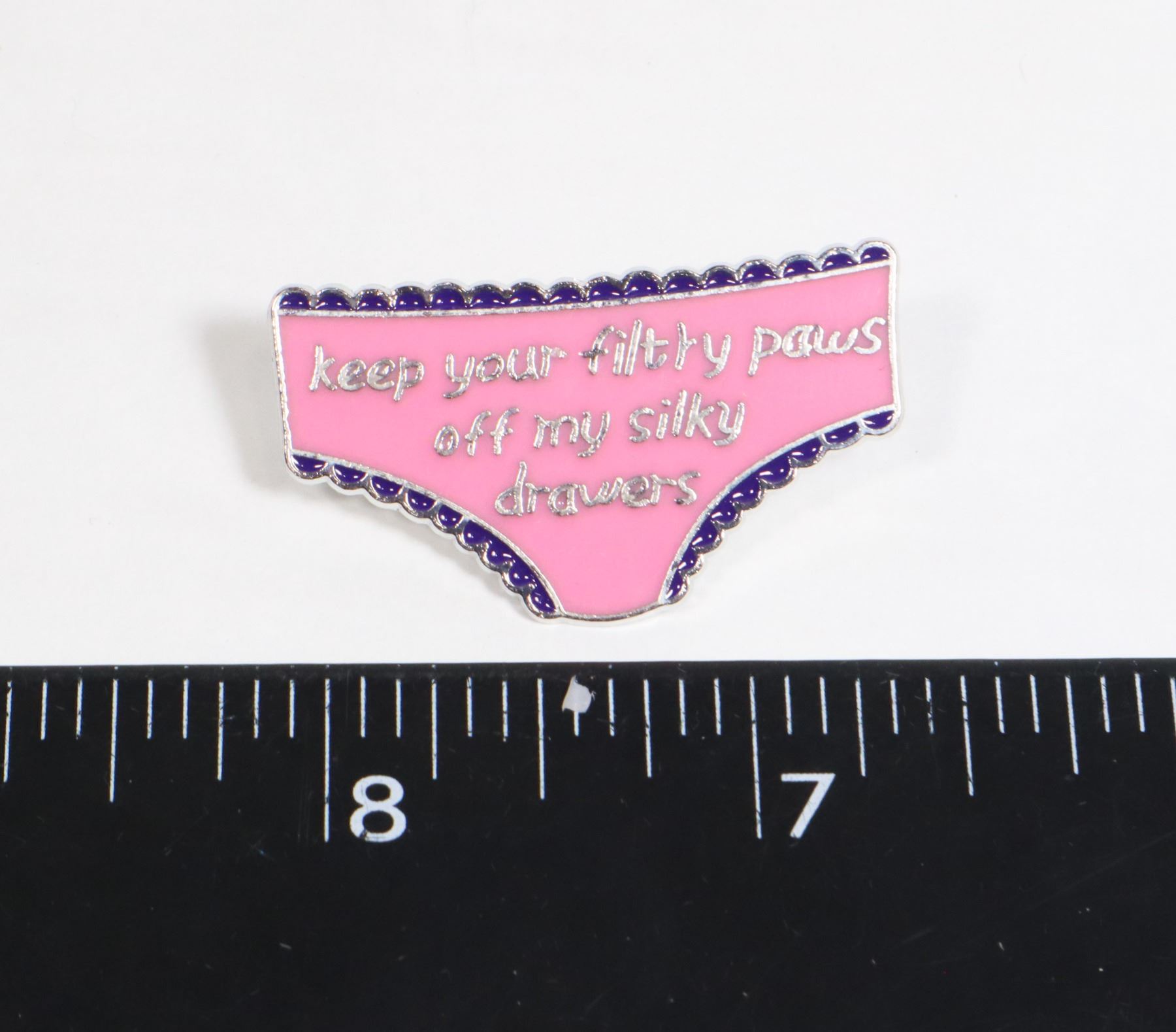 SHOULD SAY. KEEP YOUR FILTHY PAWS OF MY SILKY DRAWS" PART OF THE H IS MISSING IN FILTHY