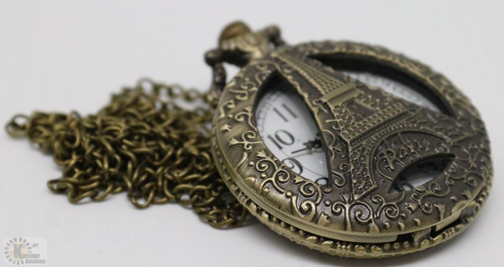 NEW PARIS EIFFEL TOWER POCKET WATCH WITH CHAIN
