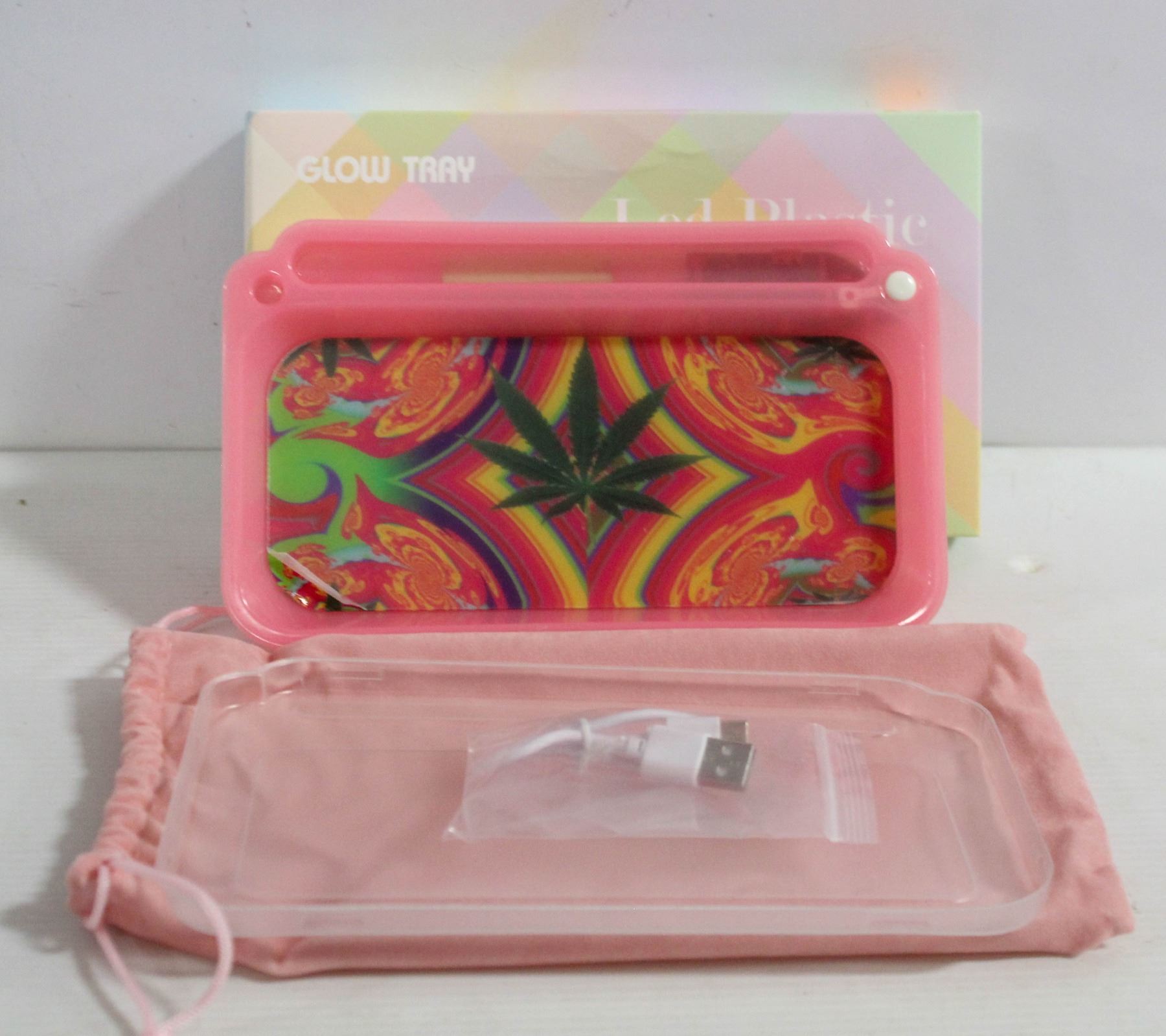 NEW PINK GLOW TRAY; LED PLASTIC ROLLING TRAY- 7