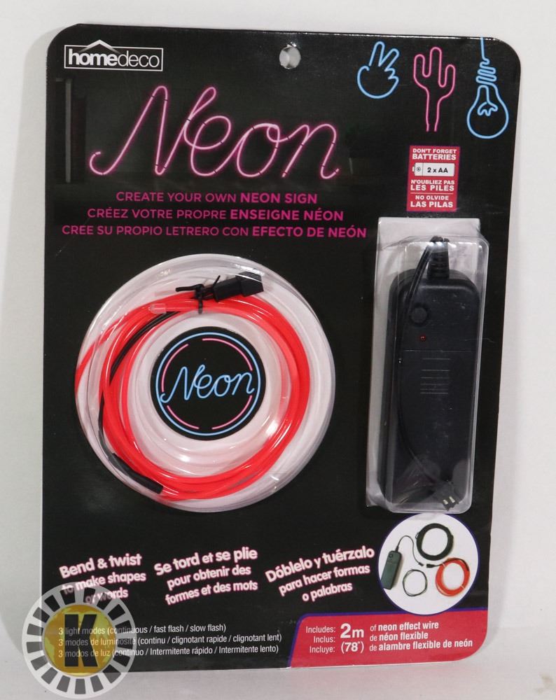 2 METER OF NEON EFFECT WIRE. INCLUDES BATTERY, SHAPING WIRE, NEON EFFECT WIRE, FIXING WIRE. REQUIRES 2 AA BATTERIES NOT INCLUDING***ITEM LOCATED IN LETHBRIDGE ALBERTA