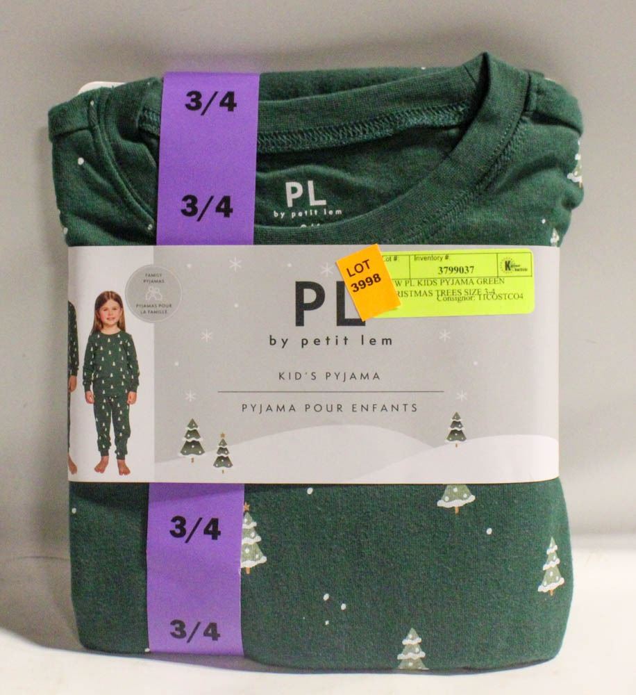 NEW PL KIDS PYJAMA GREEN CHRISTMAS TREES SIZE 3-4