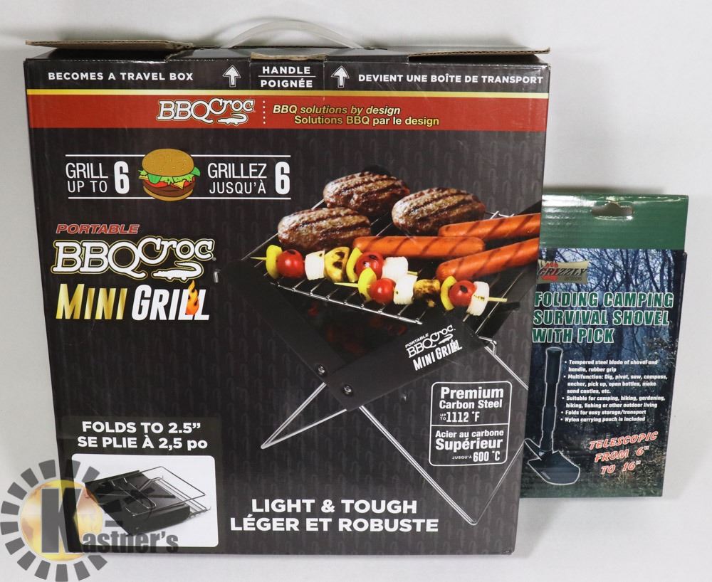 CASE MINI GRILL PREMIUM FOLDABLE CHARCOAL W/GRIZZLY FOLDABLE SHOVEL MULITUSE. HOME/OUTDOORS