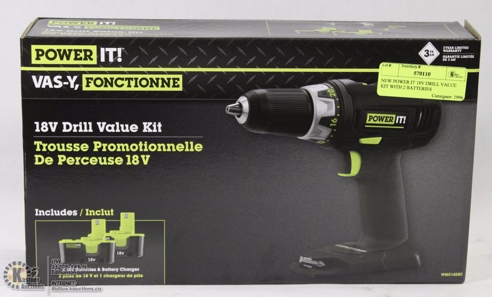 NEW POWER IT 18V DRILL VALUE KIT WITH 2 BATTERIES
