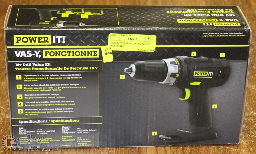 NEW POWER IT 18VOLT DRILL WITH 2 BATTERIES