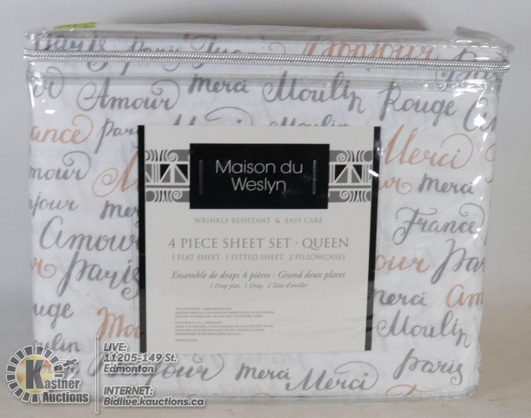 WRINKLE RESISTANT. INCLUDES FITTED SHEET, FLAT SHEET, TWO PILLOW CASES