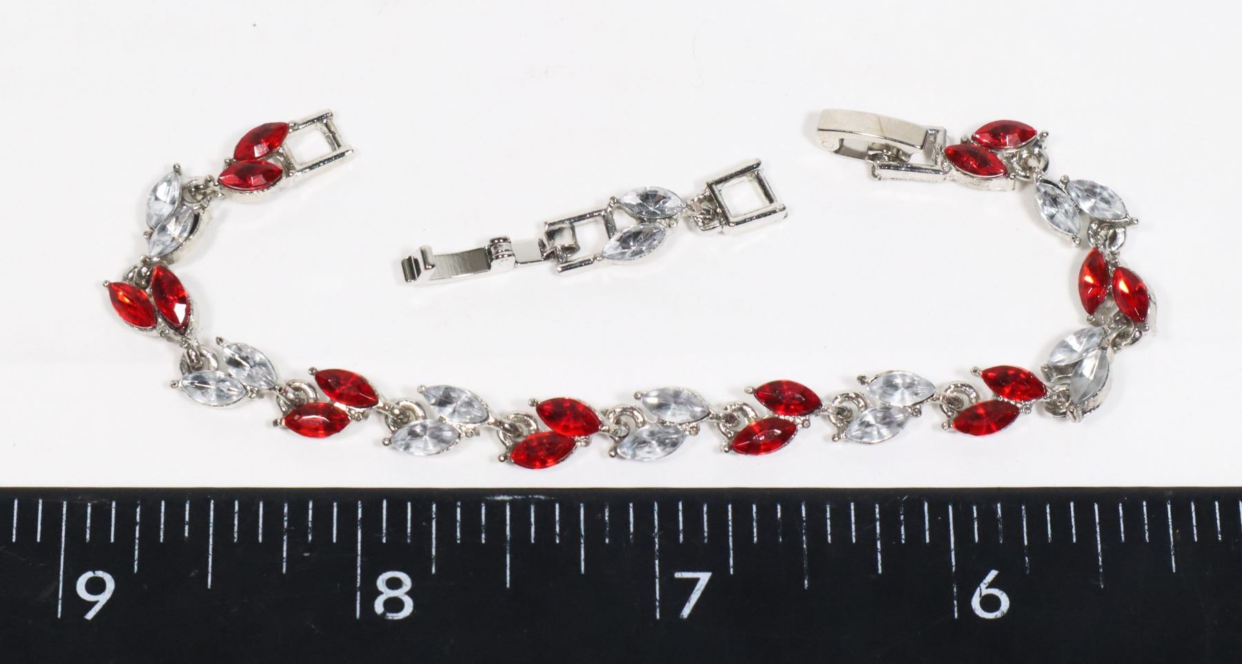 NEW RED AND CLEAR RHINESTONE LEAF DESIGN BRACELET