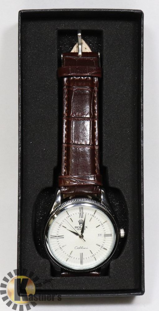 STAINLESS STEEL BACK WATER RESISTANT GENUINE LEATHER STRAP WHITE FACE|GENERAL