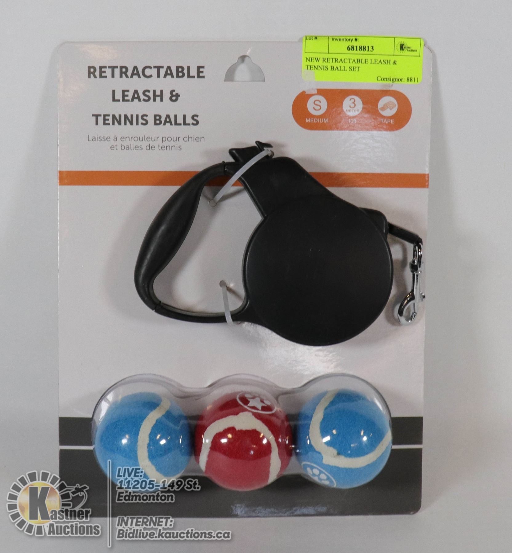 NEW RETRACTABLE LEASH & TENNIS BALL SET