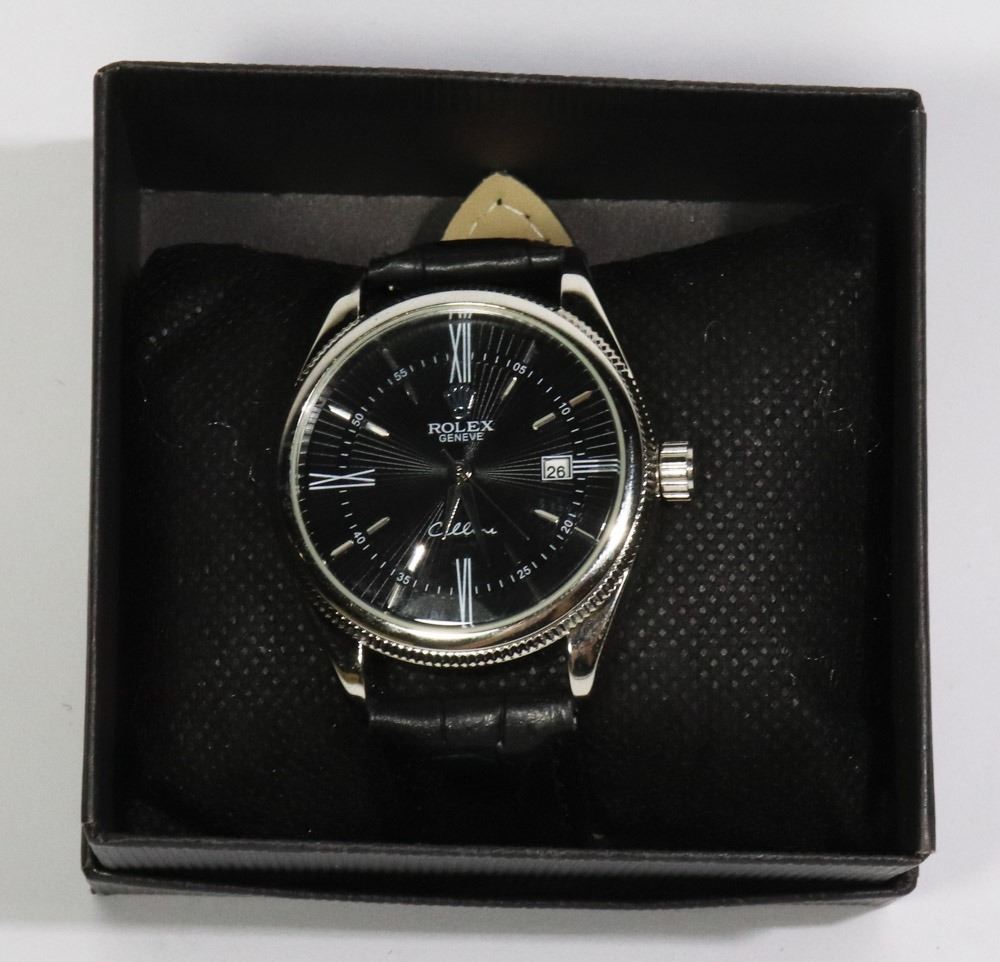 STAINLESS STEEL BACK WATER RESISTANT GENUINE LEATHER STRAP BLACK FACE-JEWELRY
