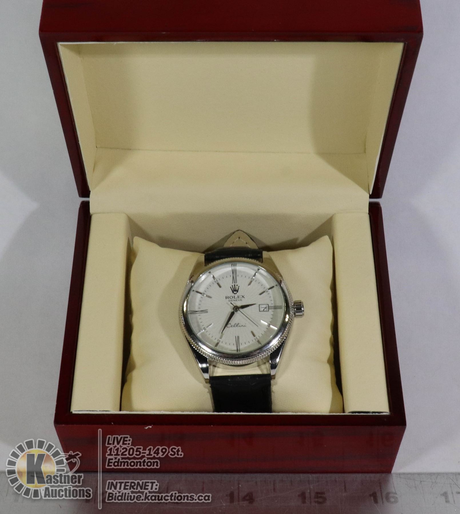 GENUINE LEATHER STRAP WITH CHERRY WOOD BOX