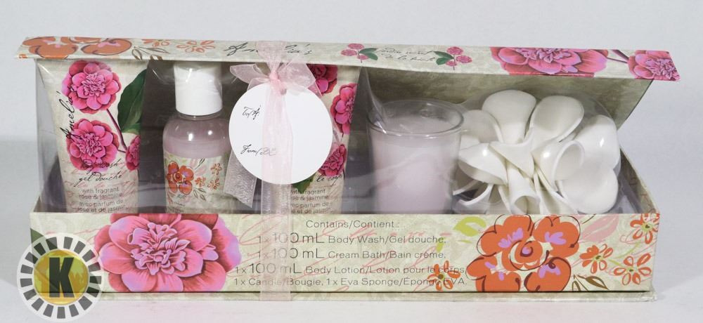 INCLUDES BODY WASH, CREAM, BODY LOTION, CANDLE, SPONGE***ITEM IS LOCATED IN LETHBRIDGE ALBERTA, PICKUP IS AT OUR LETHBRIDGE LOCATION ONLY, WORLDWIDE SHIPPING IS AVAILABLE***