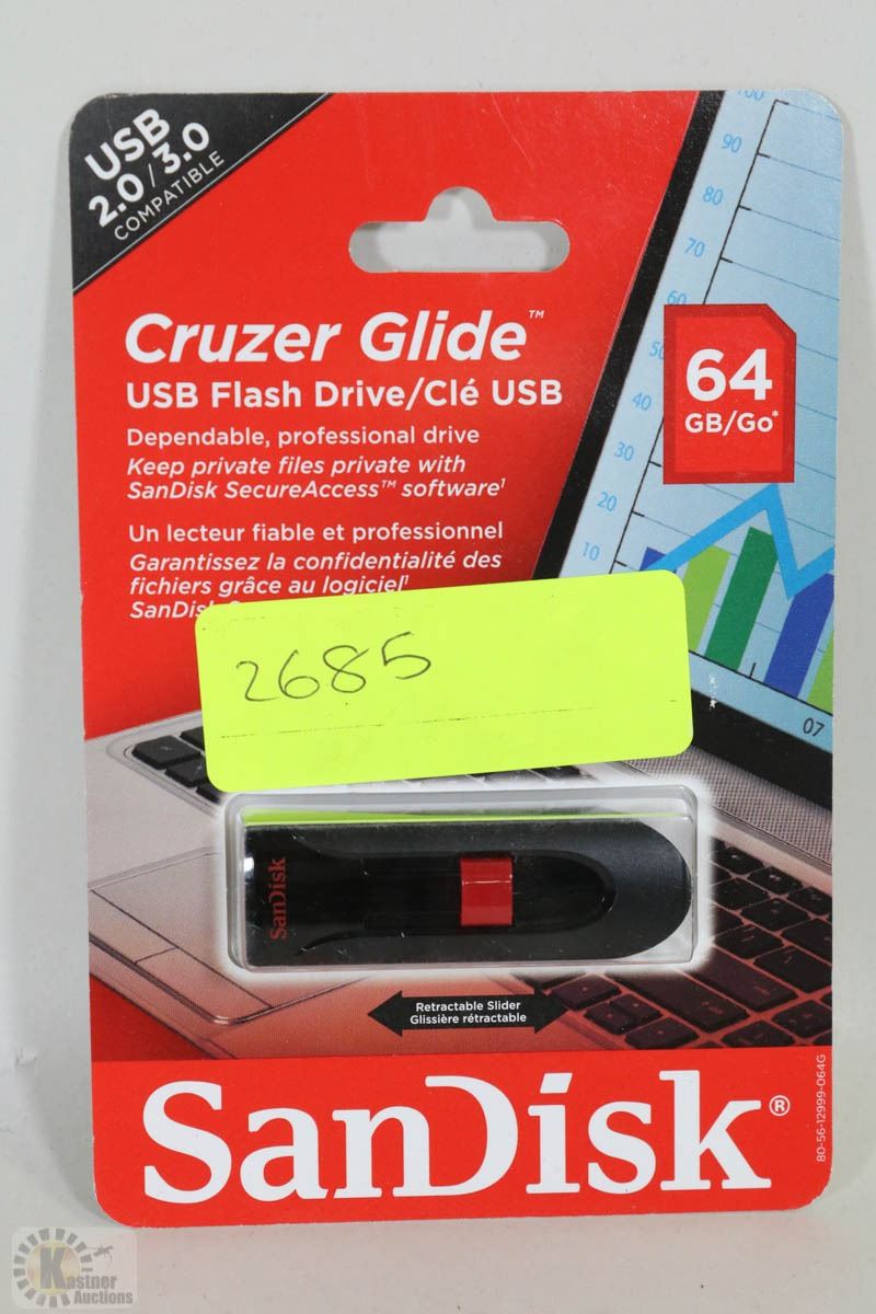 NEW SANDISK 64GB CRUZER GLIDE USB FLASH DRIVE