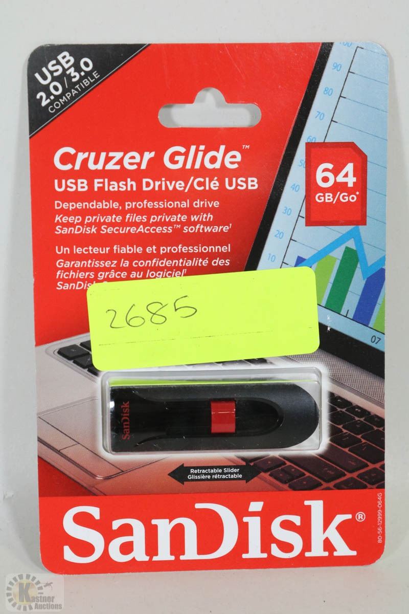 NEW SANDISK 64GB CRUZER GLIDE USB FLASH DRIVE