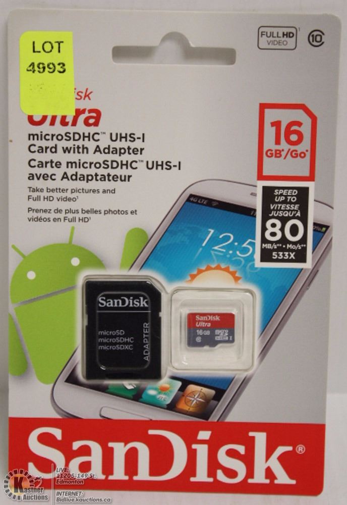 NEW SANDISK ULTRA 16GB MICRO SD CARD WITH ADAPTOR