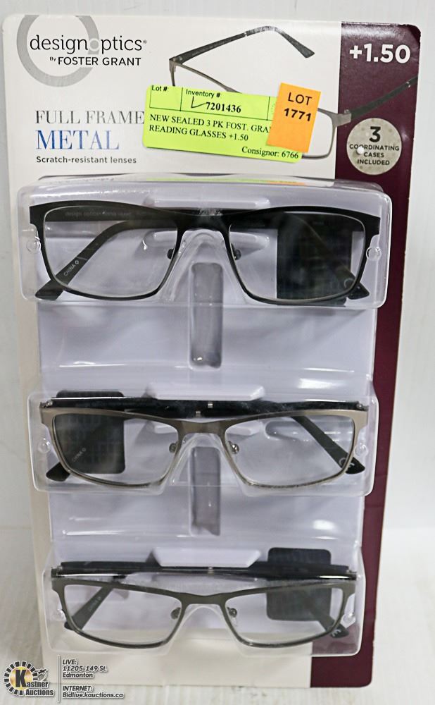 NEW SEALED 3 PK FOST. GRANT READING GLASSES +1.50