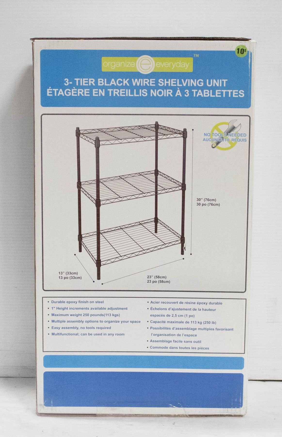 NEW SEALED 3 TIER BLACK WIRE SHELVING UNIT