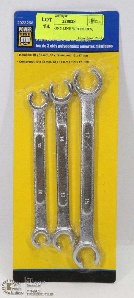 NEW SET OF 3 LINE WRENCHES, METRIC.