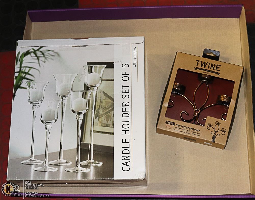NEW SET OF FIVE CANDLE HOLDERS,WINE CANDELABRA
