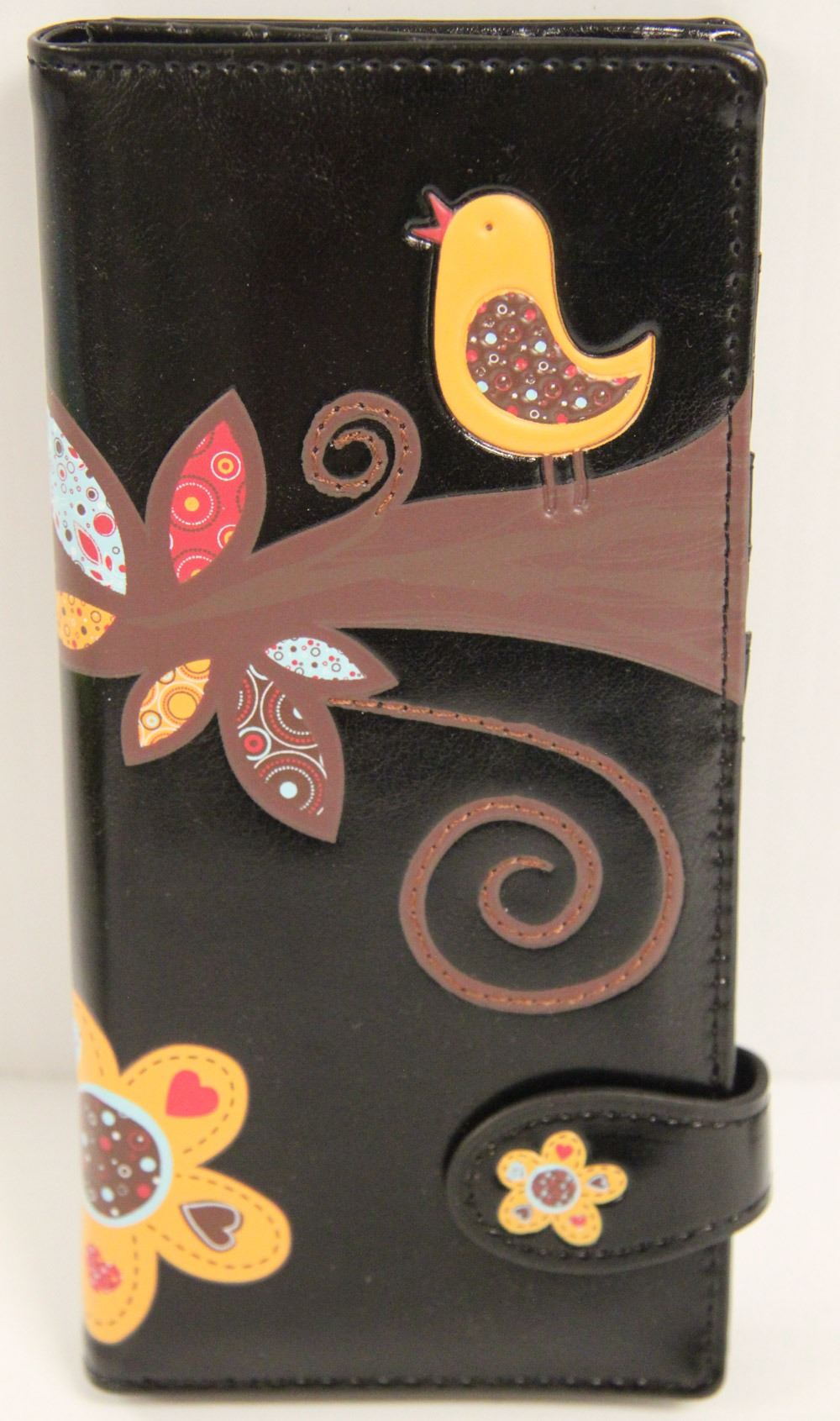 NEW SHAGWEAR WOMENS WALLET; BLACK/ BIRDS