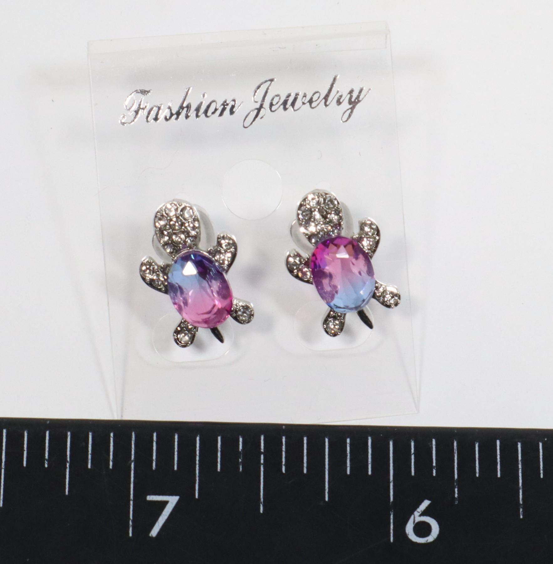 CLEAR RHINESTONE TURTLE STUD FASHION JEWELRY