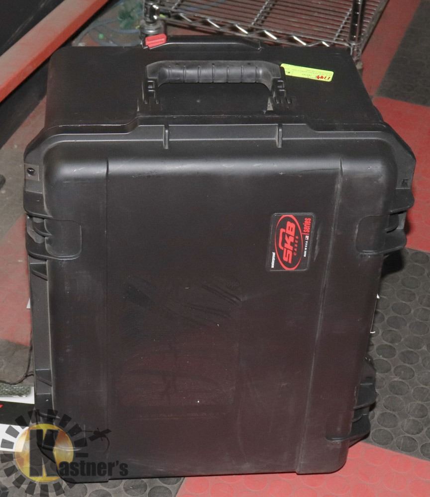22X18X12. ON WHEELS. SUITCASE STYLE WITH A HANDLE. CAN BE USED FOR OTHER PURPOSES AS WELL. HOBBIES