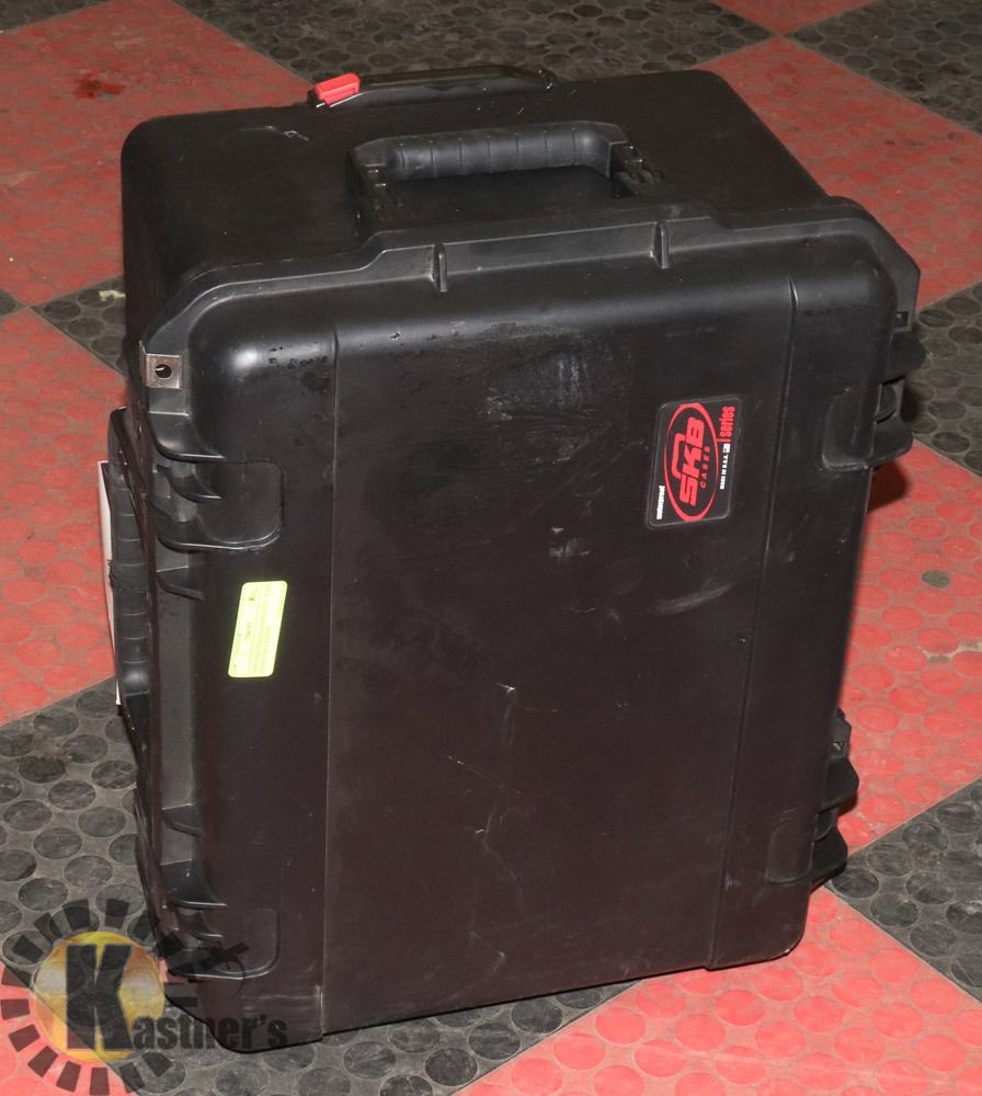 22X18X12. ON WHEELS. SUITCASE STYLE WITH A HANDLE. CAN BE USED FOR OTHER PURPOSES AS WELL. HOBBIES