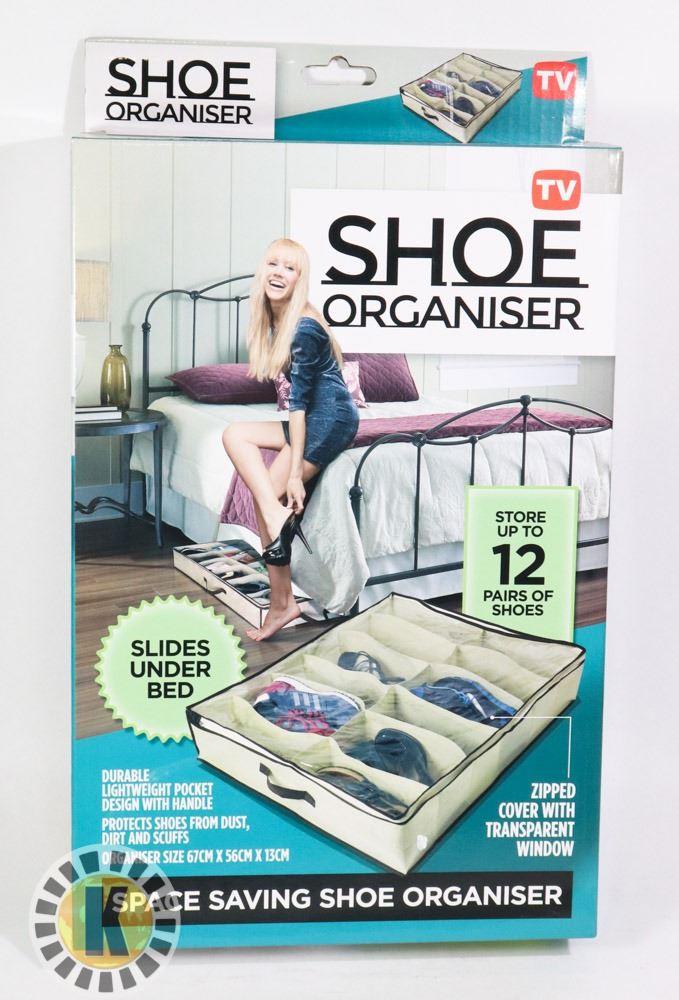STORES UP TO 12 PAIRS OF SHOES. EASILY STORES UNDER BED