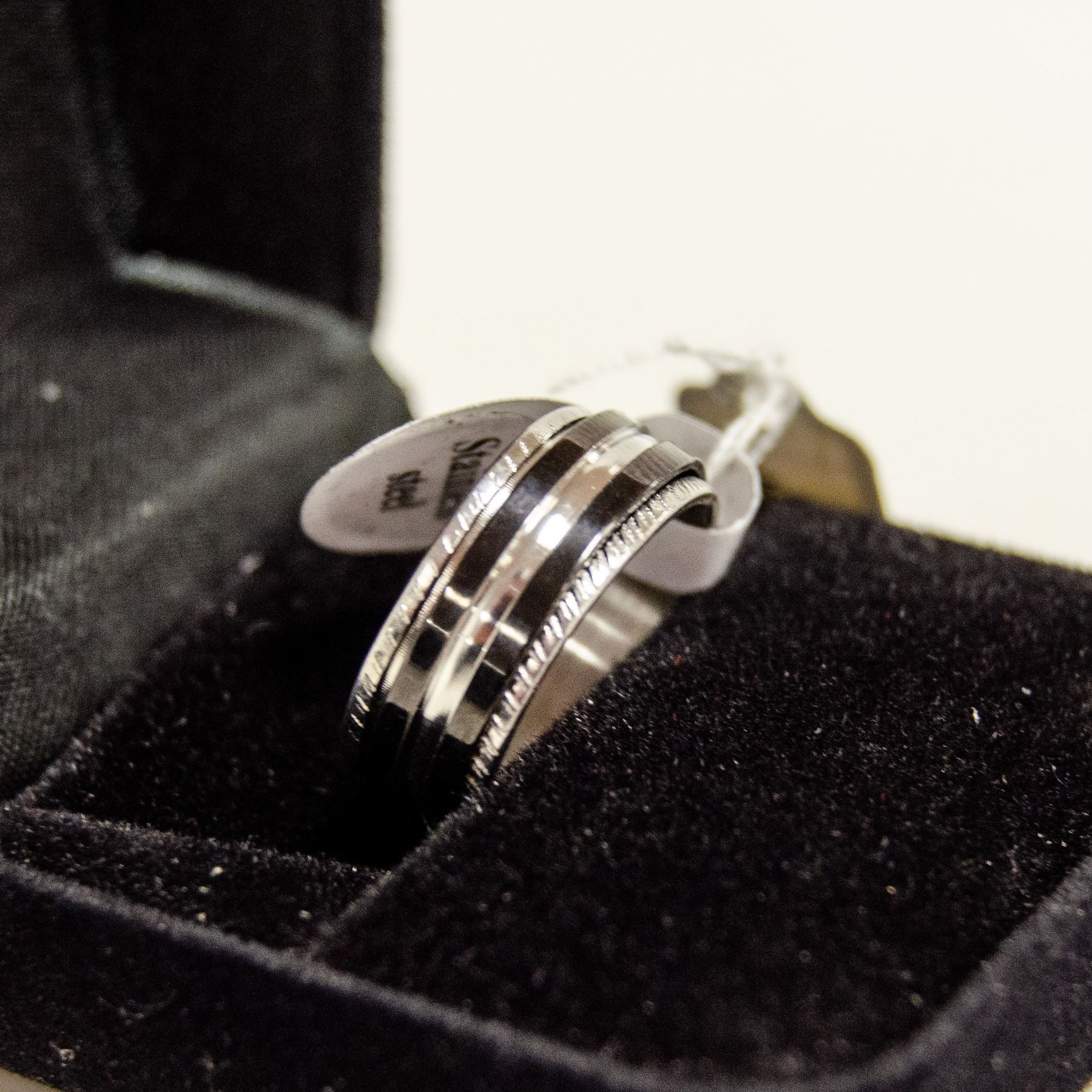 NEW STAINLESS STEEL RING SIZE 9, IN CLEAR CASE