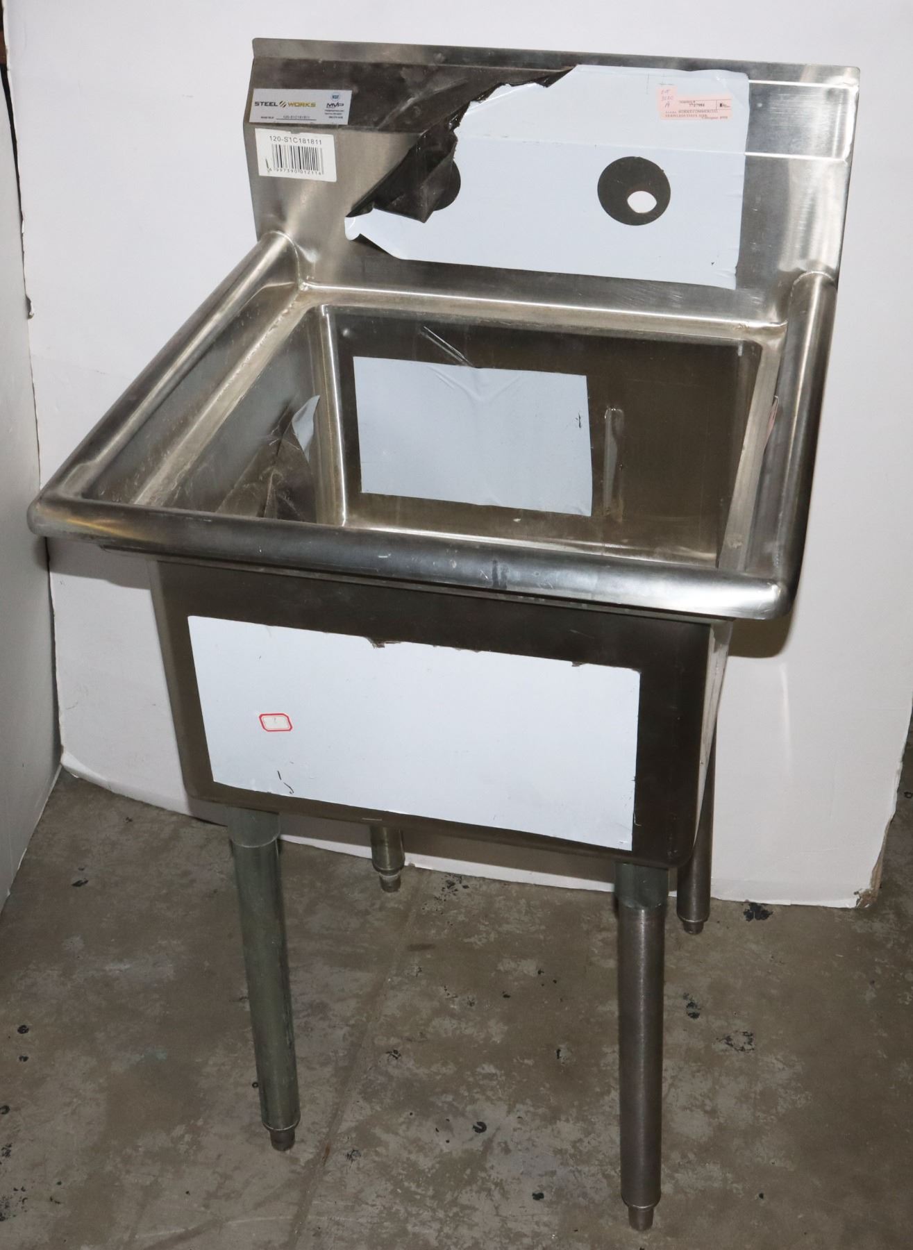 WITH LEGS. ONE LEG IS LONGER THAN OTHERS (COULD EASILY BE CUT TO MATCH). SINK NOT INCLUDING BACKSPLASH OR LEGS APPROX 23" X 22" X 13"
